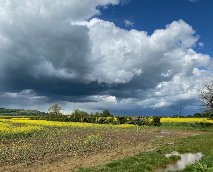 Painting Clouds in watercolour. Learn techniques to paint clouds using washes and reserving, mixing colours. Then practise these on a big sky with simple landscape, add detail and atmospheric effects with white gouache.